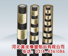 主要由耐液體的內(nèi)膠層、中膠層、2或4或6層鋼絲纏繞增強(qiáng)層、外膠層組成,內(nèi)膠層具有使輸送介質(zhì)承受壓力,保護(hù)鋼絲不受侵蝕的作用,外膠層保護(hù)鋼絲不受損傷,鋼絲(φ0.3--2.0增強(qiáng)鋼絲)層是骨架材料起增強(qiáng)作用。